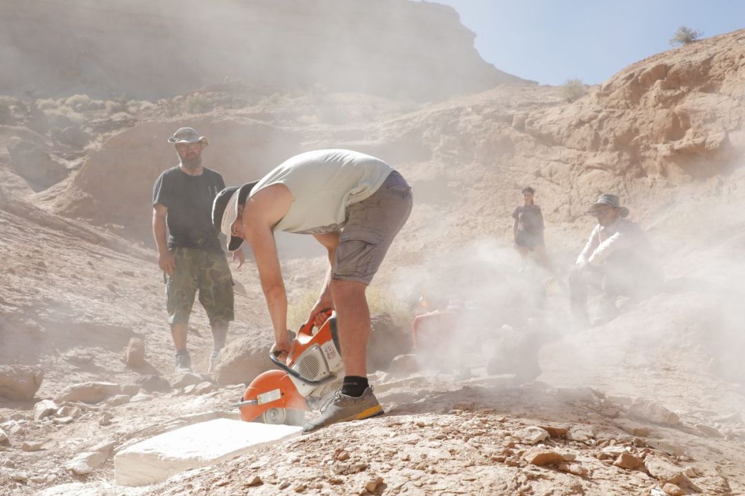 Cortando la roca en el lugar de trabajo, la Buitrera.