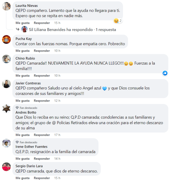 También, lo despidieron sus conocidos: «Que triste noticia, QEPD, mis condolencias a su familia», mencionó una mujer. «QEPD compañero, lamento que la ayuda no llegara para ti, espero que no se repita en nadie más».