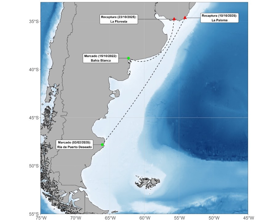 «Suponíamos que, en verano, para la época de parición, subían a la provincia de Buenos Aires y seguían hasta Uruguay, por la temperatura del agua, por la profundidad. Pero no era algo tangible hasta que nos avisaron del hallazgo en La Paloma. Ahí cerramos el ciclo», planteó el investigador.
