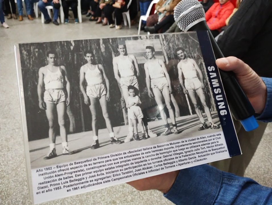 Julio Tort es este emblemático vecino, que se animó a pisar de nuevo una cancha de básquet, después de la última vez, hace 63 años. Lo recibió el equipo “Geronto Raptors”, que se junta cada martes y jueves, desde las 21, en el Polideportivo local. “Me invitaron a mirar, pero voy a empezar de nuevo. Me viene bien, aunque sea para caminar un poco, ya fui a inflar de nuevo la pelota que todavía tengo”, dijo el hombre entusiasmado, en diálogo con RÍO NEGRO.