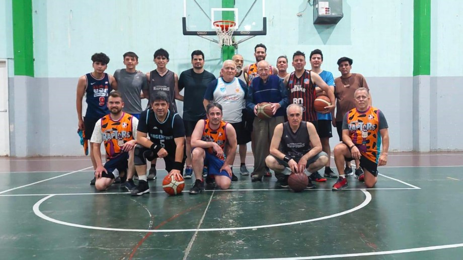 Julio Tort es este emblemático vecino, que se animó a pisar de nuevo una cancha de básquet, después de la última vez, hace 63 años. Lo recibió el equipo “Geronto Raptors”, que se junta cada martes y jueves, desde las 21, en el Polideportivo local. “Me invitaron a mirar, pero voy a empezar de nuevo. Me viene bien, aunque sea para caminar un poco, ya fui a inflar de nuevo la pelota que todavía tengo”, dijo el hombre entusiasmado, en diálogo con RÍO NEGRO.