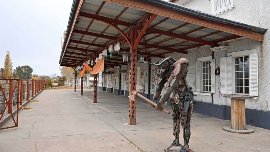 La ex estación de Mainqué es la máxima expresión de abandono, con un edificio deteriorado, en desuso y rodeado de escombros. Hasta un auto dañado, ropa colgada y perros vagabundos forman parte de la triste postal.