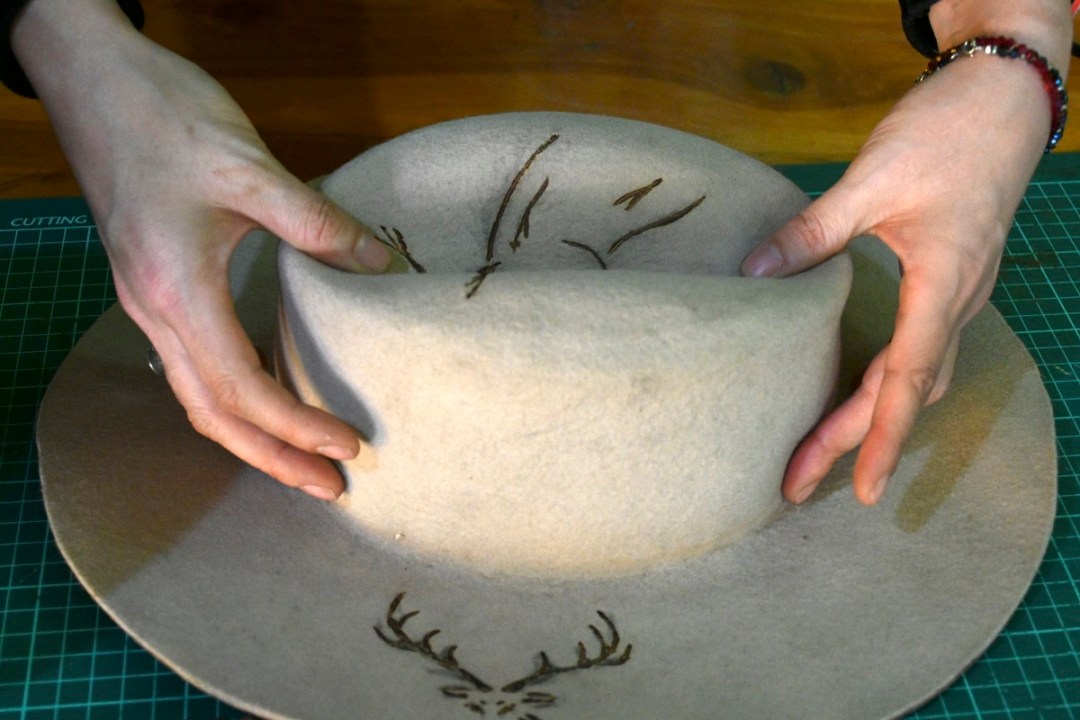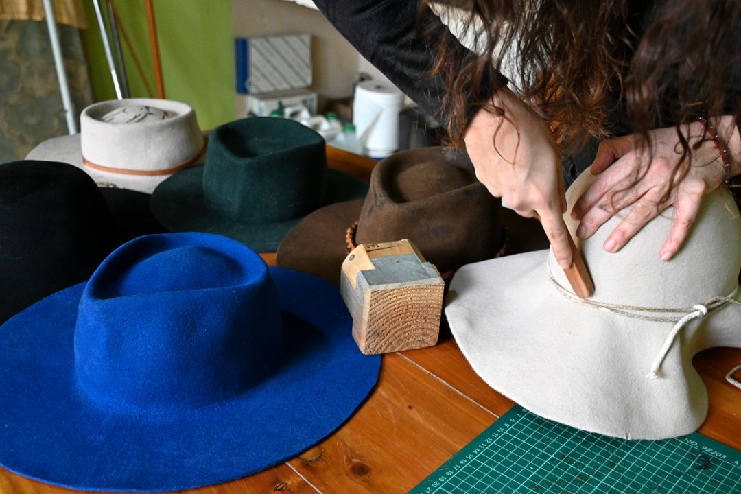 Como materia prima, emplea el fieltro, un material de cientos de capas de lana merino prensada. «Se hace un tratamiento al sombrero para darle rigidez pero que, a la vez, quede blando», comentó.