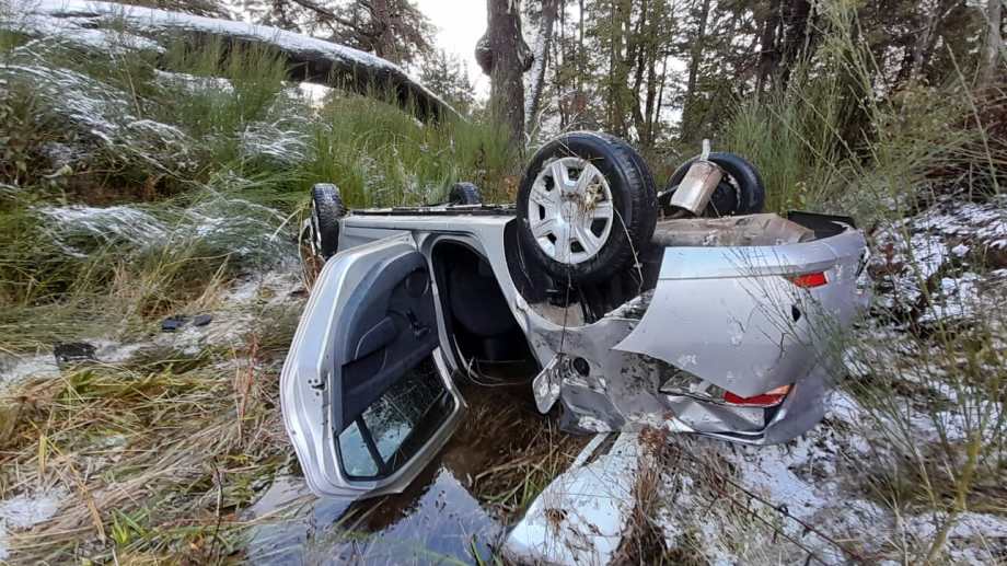 Un llamado alertó sobre un despiste en la zona de La Estacada el lunes pasado al mediodía. En ese sector, indicaron pobladores de la zona, «suele juntarse mucho hielo«. Al llegar al lugar, los bomberos y el personal policial de la Comisaría 28 de La Angostura detectaron que el conductor había perdido el control del Renault Logan que terminó cruzando la ruta y volcó sobre la banquina.