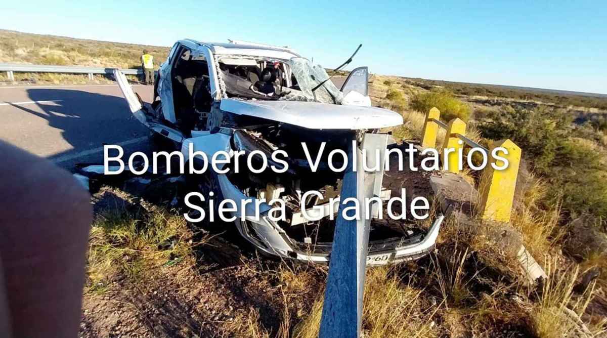 Los Bomberos Voluntarios de Sierra Grande informaron que el operativo de emergencia se activó a las 6.18 cuando recibieron un llamado por el accidente vehicular sobre la Ruta Nacional 3, en el kilómetro 1251, en el acceso norte a Sierra Grande. Cinco minutos después, se movilizaron al lugar los móviles 10 y 11.