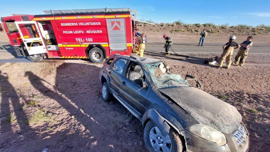 El incidente vial fue confirmado a RÍO NEGRO por Lucas Venancio, el jefe de bomberos voluntarios de Picún Leufú, localidad que se encuentra a unos 14 kilómetros del punto exacto del vuelco. «Tuvimos que utilizar herramientas hidráulicas para retirar de la mejor manera al conductor, que estaba inconsciente, en tanto que los otros tres ocupantes del auto estaban con lesiones menores», narró.