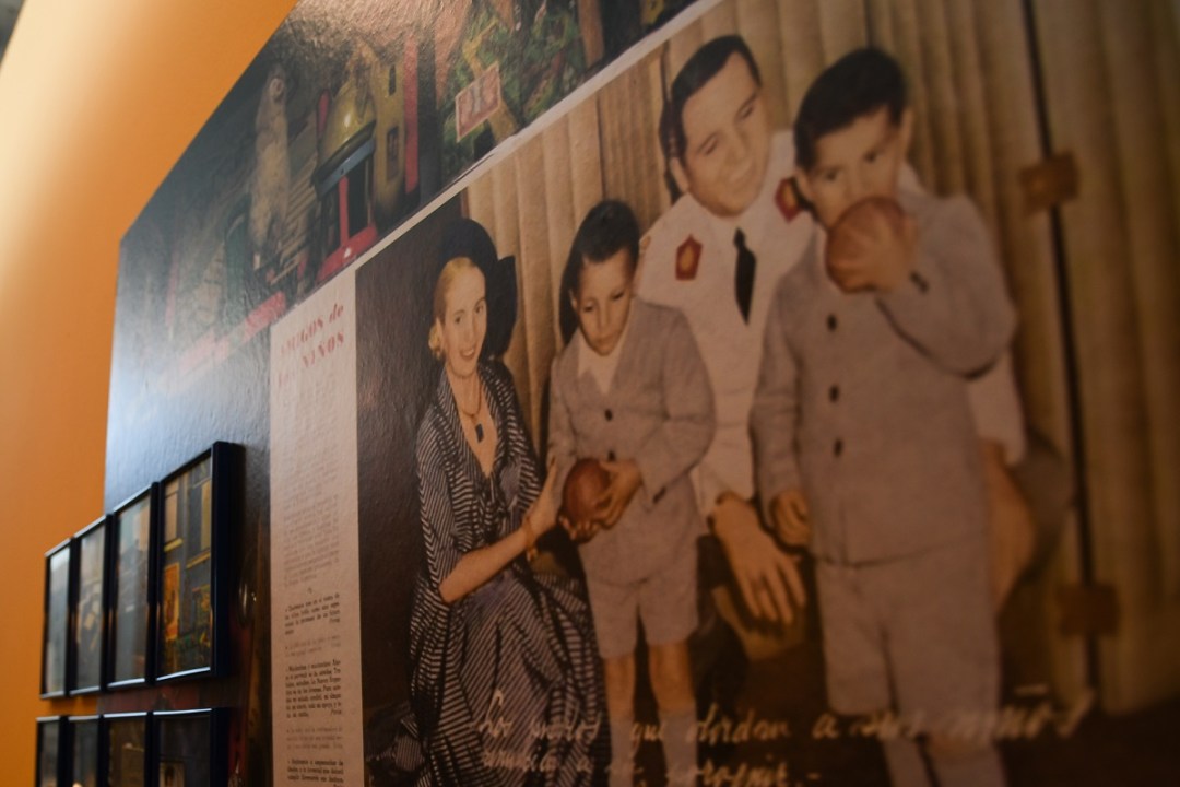 «La muestra da cuenta de la infancia también como sujeto político. En las estampillas que Evita mandaba por correo con estos juguetes se puede leer ‘Para mis pequeños descamisaditos»,
