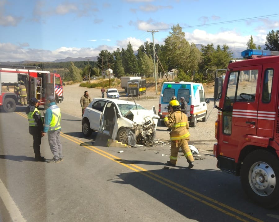 Por causas que son materia de investigación colisionaron de frente un auto Toyota Etios que iba en dirección Bariloche-Dina Huapi y un Jeep Renegade que circulaba en sentido contrario.
