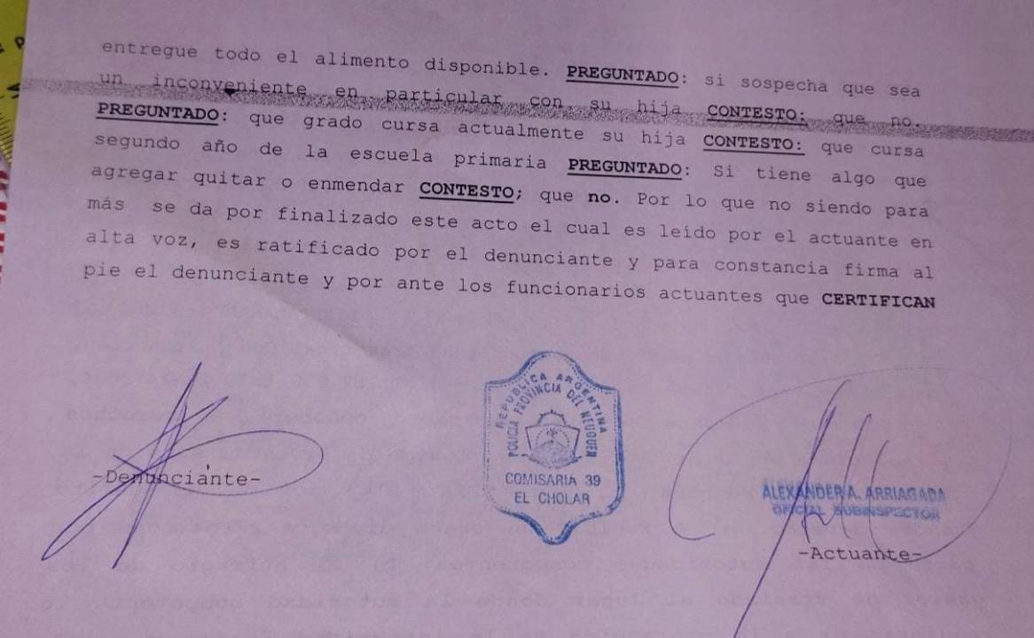 De acuerdo a FM Patagonia, de Chos Malal, quien difundió lo sucedido fue la mamá de la nena, que compartió algunos fragmentos de la denuncia y relató lo que vivió.