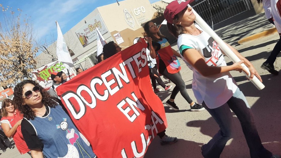 Los trabajadores se manifestaron en la plaza San Martín de Cinco Saltos a partir de las 9. Habrá una radio abierta, feria, producciones de cuadrillas de trabajo y comisiones barriales, clases publicas con actividades educativas lúdicas y recreativas. Las mismas, serán realizadas por los trabajadores de la educación del gremio Unter.