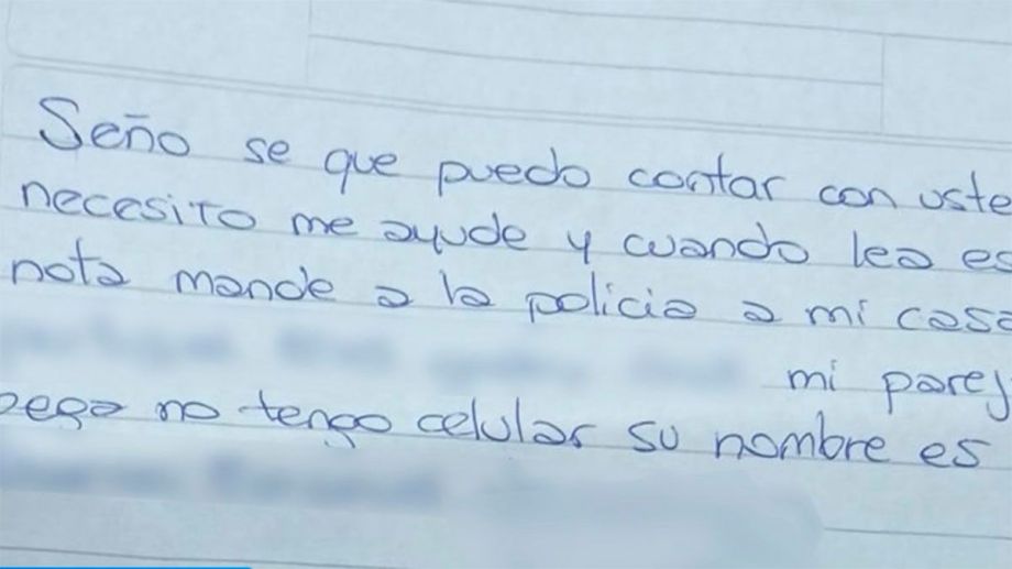 «Seño, sé que puedo contar con usted, necesito que me ayude y cuando lea esta nota, por favor mande a la policía a mi casa, mi pareja me pega y no tengo celular, su nombre es, (agrega el nombre de su agresor)», es la nota que escribió la víctima.