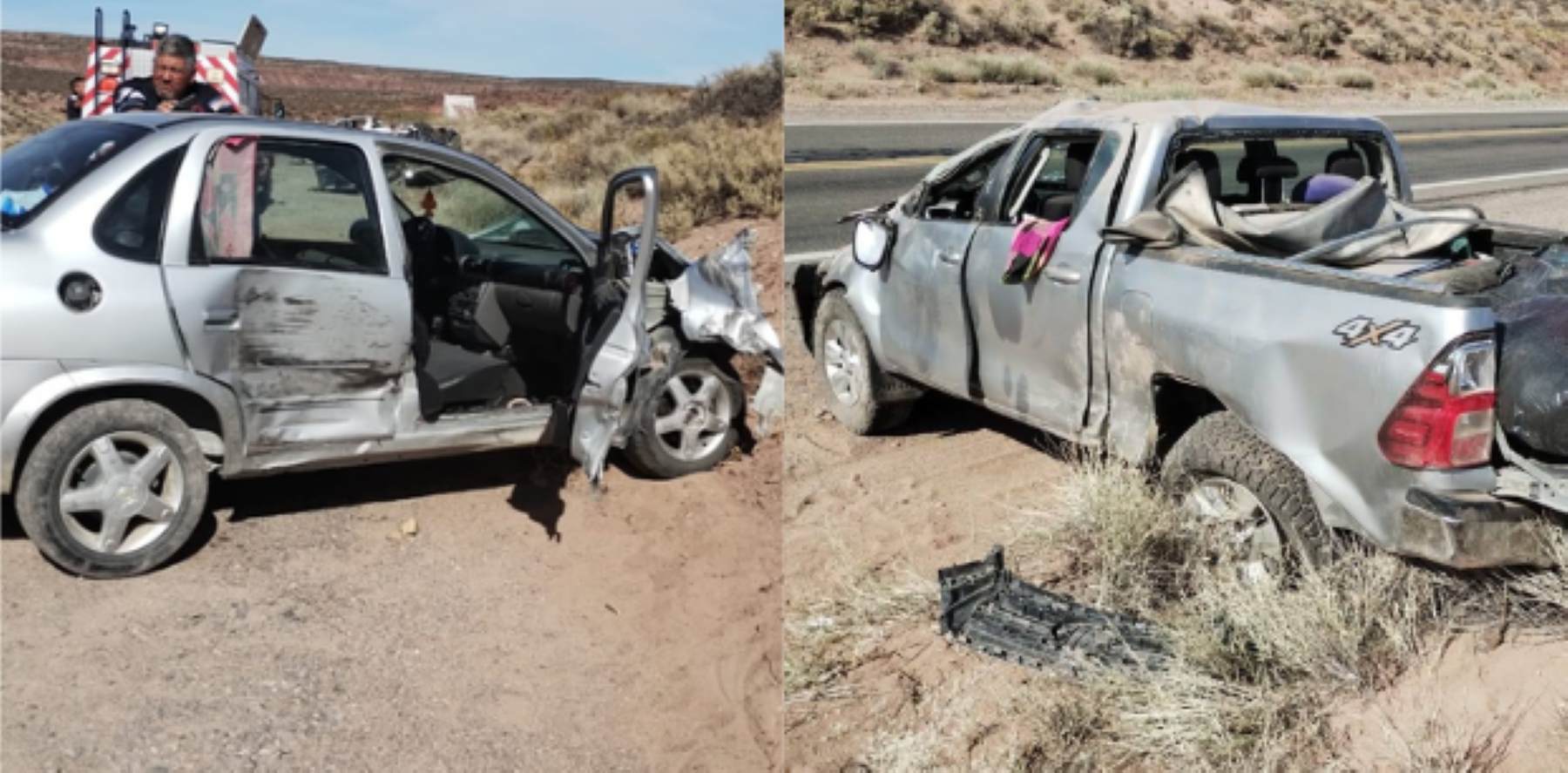 Allí, una familia oriunda de Carmen de Patagones viajaba en dirección a Neuquén a bordo de un Chevrolet Classic mordieron banquina en la curva, generando que el conductor pierda control del vehículo y termine invadiendo el carril contrario.