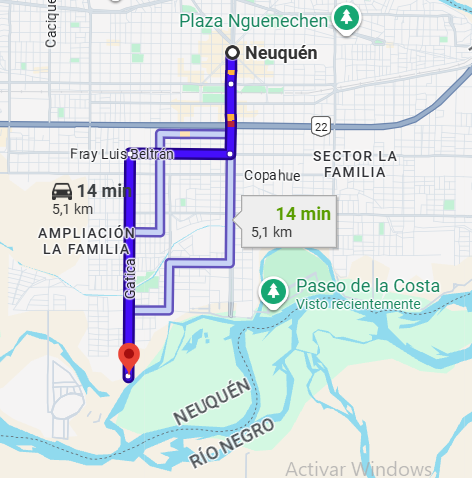 Su extensión está al costado del puente que une Neuquén con Las Perlas y tiene más de 800 metros de costa habilitada.