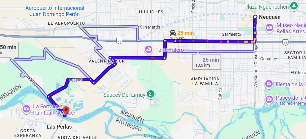 Para acceder al Balneario Valentina hay que tomar la Autovía Neuquén / Plottier, exRuta 22. Tomar calle Chaco, luego Lanín, San Ignacio, Esquel, y luego, por último, el acceso al río, por calle Futaleufu.