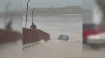 Video | Fuerte temporal en Las Grutas: un Jeep fue arrastrado por el agua en la tercera bajada