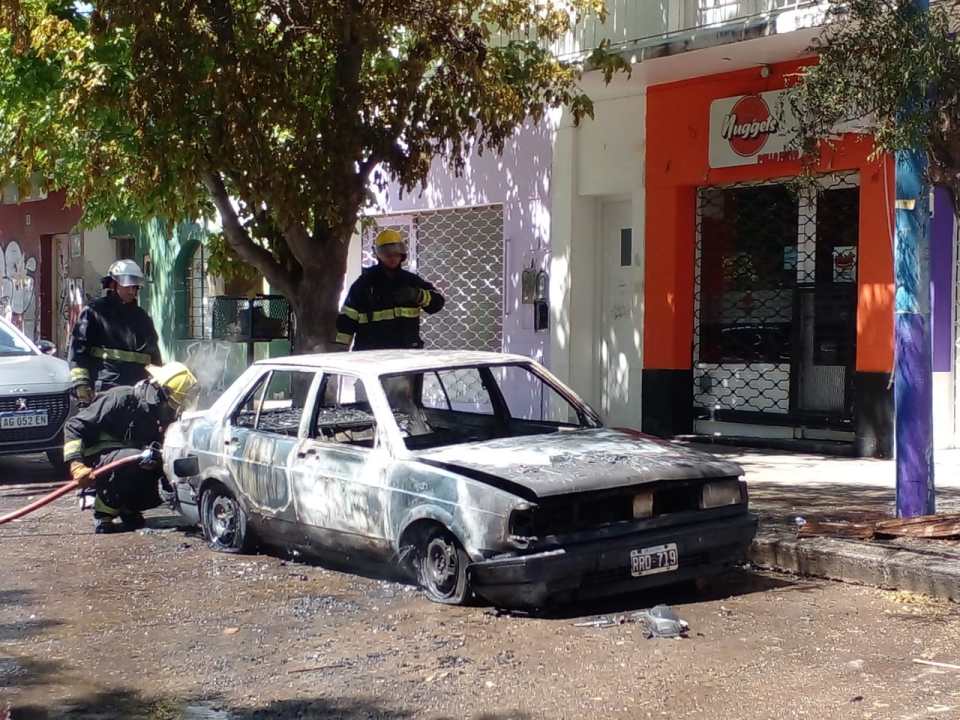 Un vecino que caminaba por la calle Maipú vio como el vehículo se estaba incendiando en su interior. Rápidamente llamó a los bomberos y una dotación se presentó en el lugar.