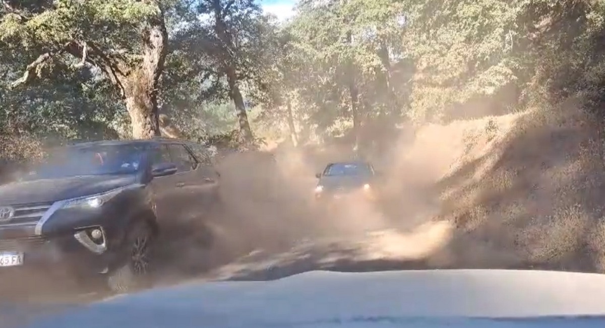 En las imágenes compartidas, se puede ver a varios autos pasando por el lugar, en medio de una polvareda y dando varios «saltos» por el serrucho y los pozos presentes en el camino.
