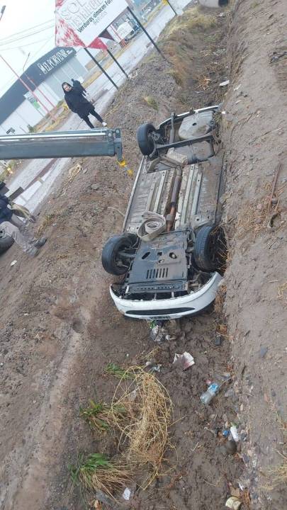 Durante la noche de este lunes se produjo un accidente en Saturnino Franco y Circunvalación. Según explicaron testigos, un vehículo intentó esquivar a otro para evitar un choque y cayó al desagüe que se encuentra aledaño a la calle.