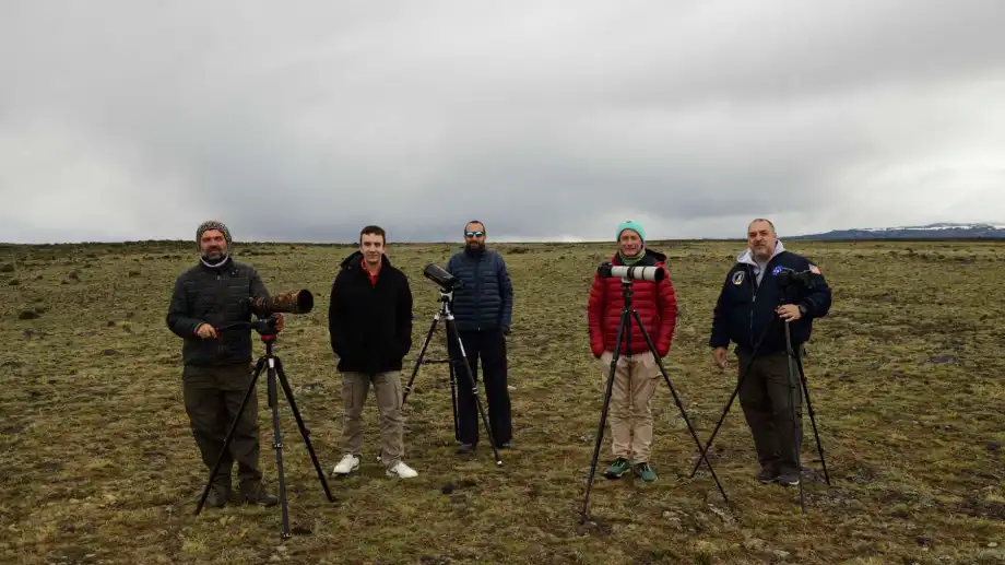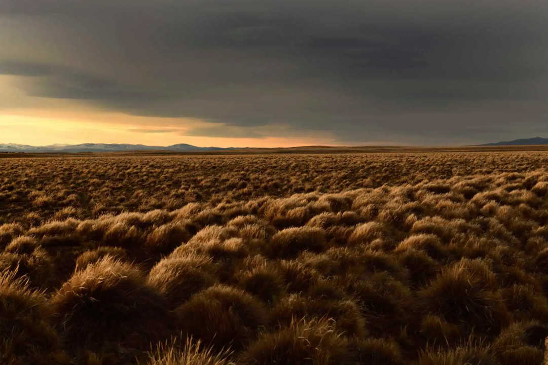 La meseta patagónica se extiende a nuestro alrededor, con su terreno árido y su vegetación baja. El cielo parece infinito y el viento, que sopla con fuerza, nos recuerda siempre dónde estamos.