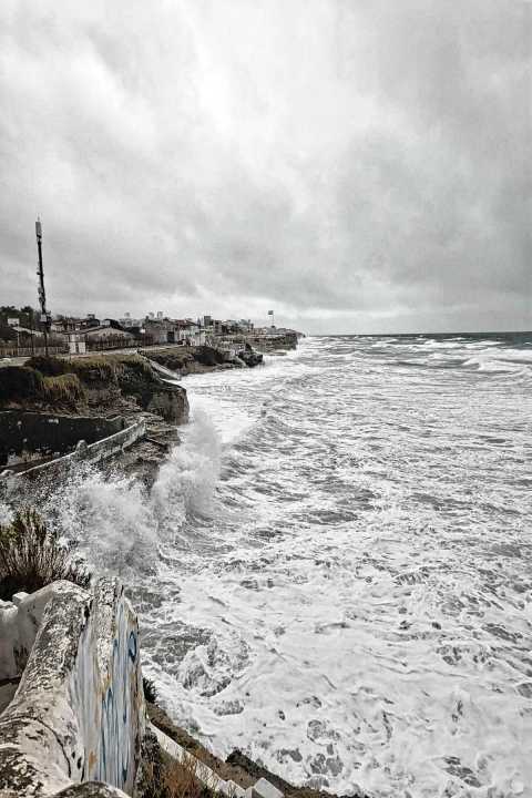 Una vecina de Las Grutas capturó las imágenes del cielo gris, el viento y las olas que azotaron con furia la costa de Río Negro este viernes.