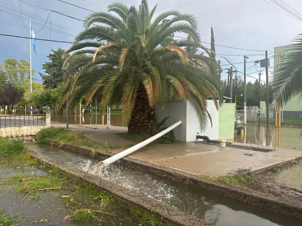 Para colaborar en el desagote, tuvo que intervenir personal de Bomberos Voluntarios y personal municipal.