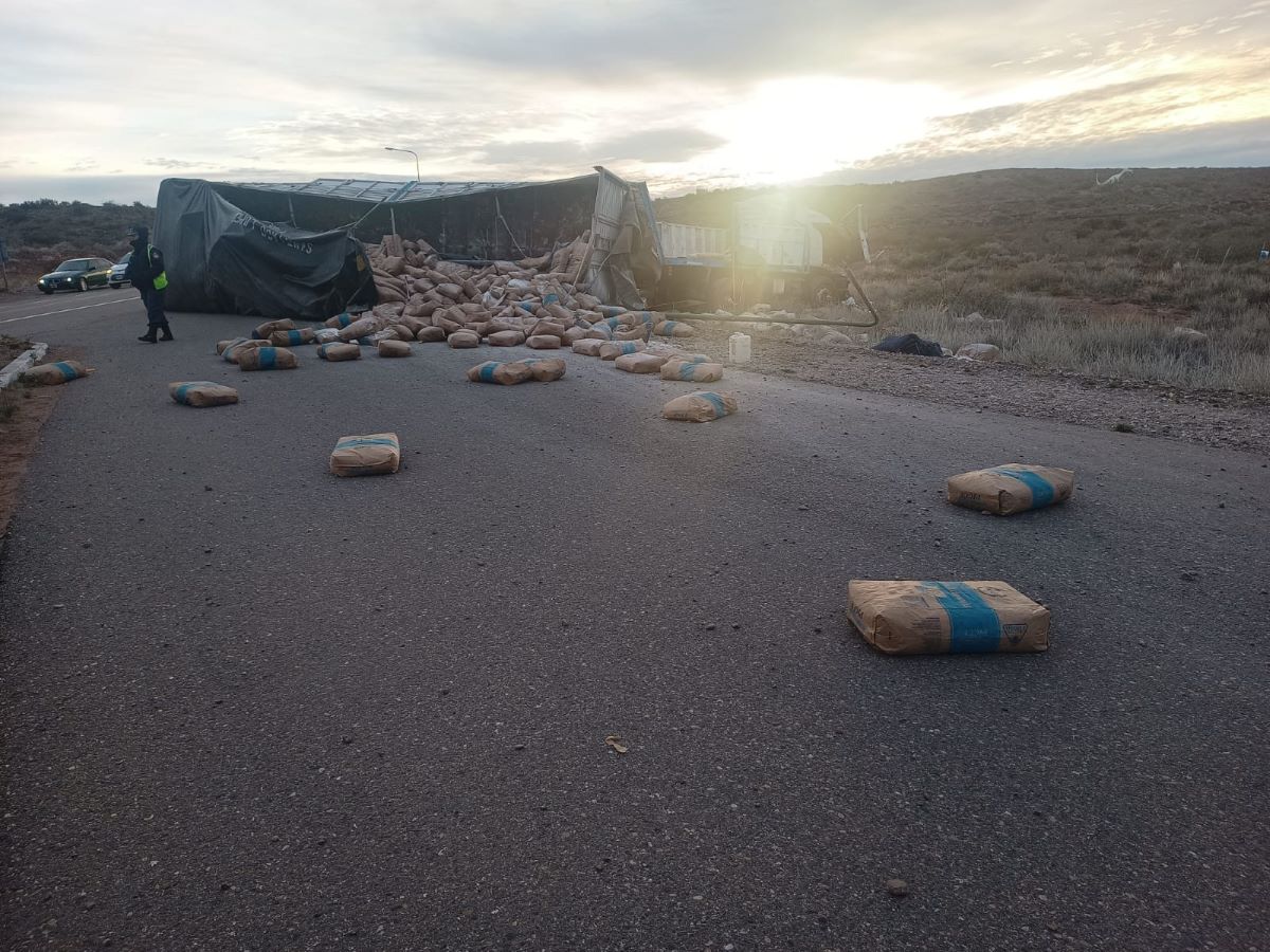 Un camión que transportaba harina volcó esta mañana sobre Ruta 237, en el ingreso a Villa El Chocón. Se produjo por esquivar un caballo, según las primeras informaciones.