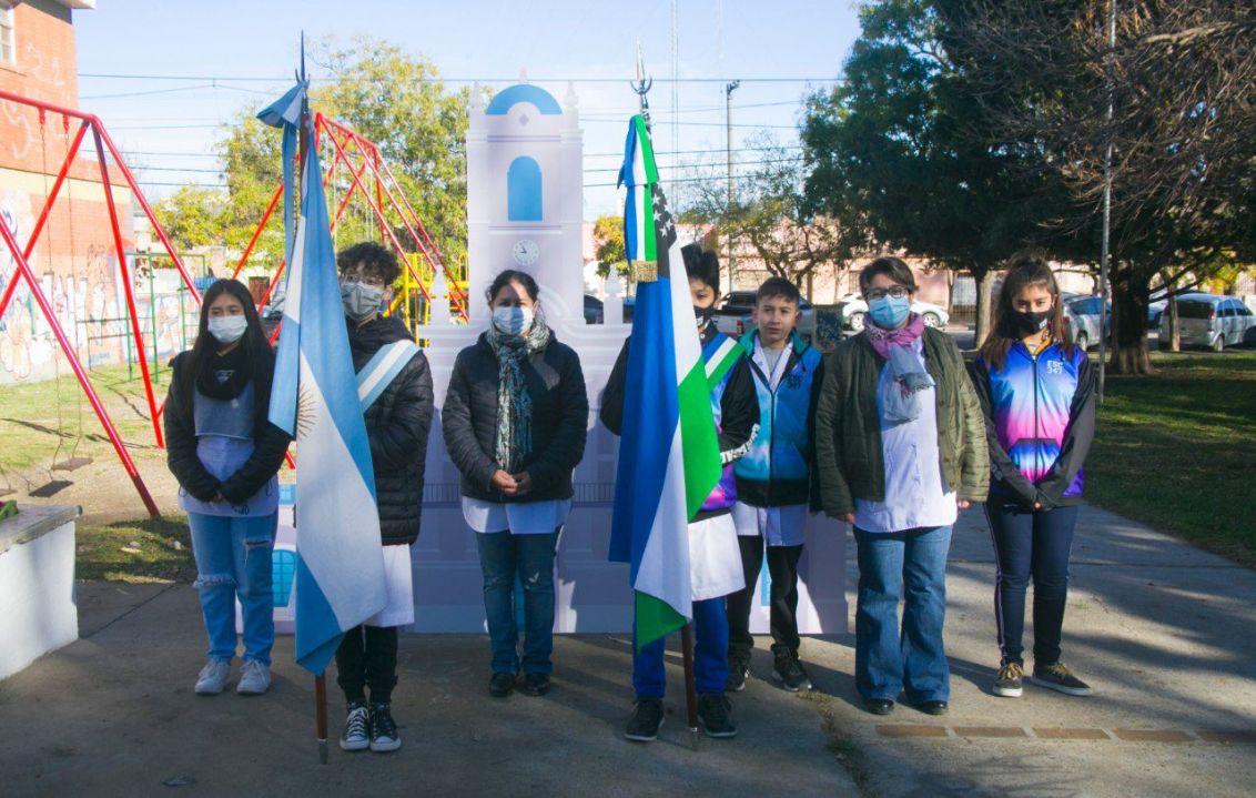 Durante este homenaje, la comuna ideó un acto distinto. Se trasladó imaginariamente a la histórica Plaza de Mayo de hace 212 años, con el Cabildo de la Ciudad de Buenos Aires de fondo.
