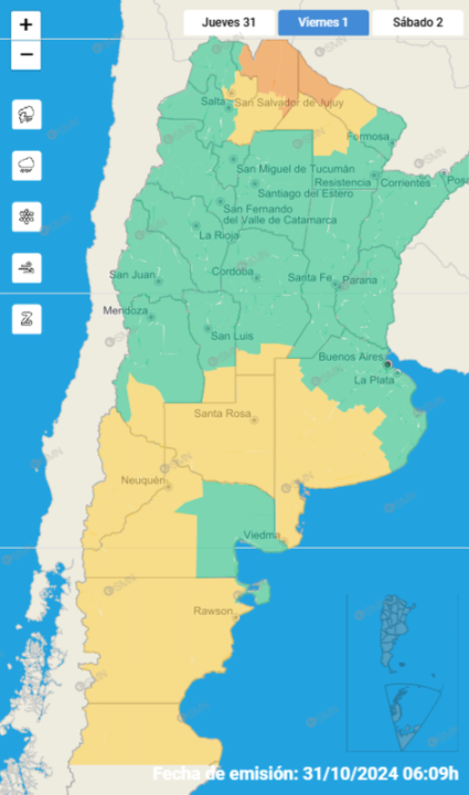 En tanto, en Río Negro, la alerta rige para El Cuy, General Roca, Bariloche, Pilcaniyeu, Ñorquinco, Nueve de Julio y Veinticinco de Mayo. Se esperan ráfagas que pueden superar los 100 kilómetros por hora durante la tarde y noche de este viernes.