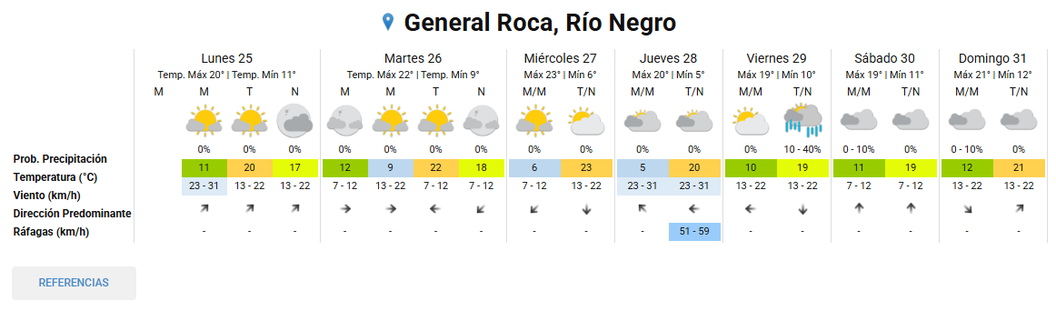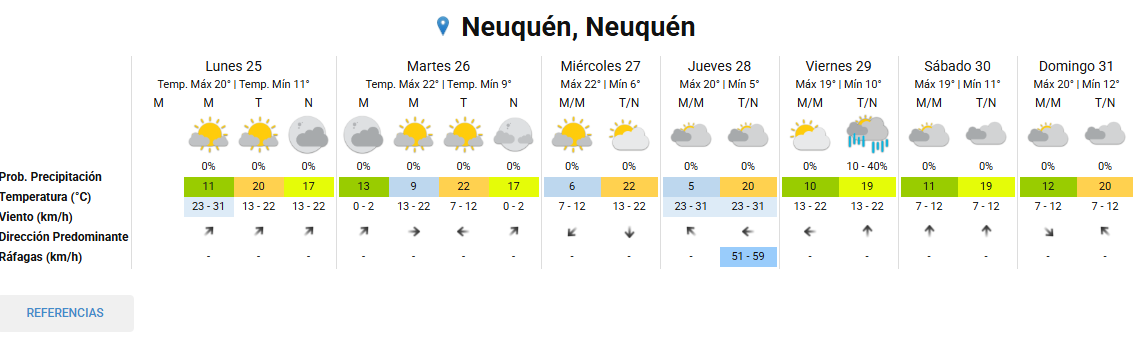 Tanto en Neuquén capital como en Roca, tras cuatro jornadas sin probabilidades de precipitaciones, el pronóstico del SMN indica un aumento en la inestabilidad hacia el viernes por la tarde y noche, con probabilidad de lluvias.