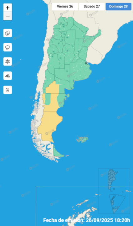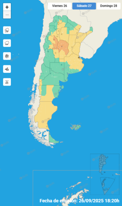 El organismo nacional indicó que este sábado 27 de septiembre algunas localidades de ambas provincias registrarán lluvias de variada intensidad.
