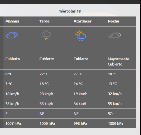 En Roca, la temperatura máxima llegará a los 27°C durante la tarde, en cuanto a la temperatura mínima se espera que supere los 3°C. Al igual que en Neuquén, se espera una jornada con el cielo cubierto con precipitaciones por la tarde noche.
