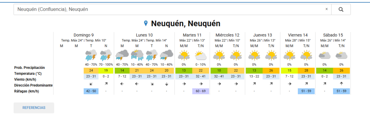 Hacia el fin de semana, el viernes 14 y sábado 15 mostrarán un aumento de las ráfagas de viento. Se esperan velocidades de hasta 59 Km/h en la noche para ambos días. Las máximas se mantendrán elevadas, con 28°C el viernes y 26°C el sábado, ideal para actividades al aire libre con precaución ante el viento.