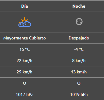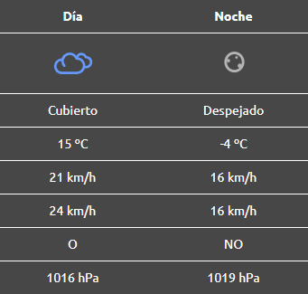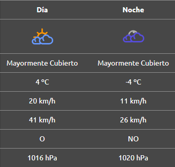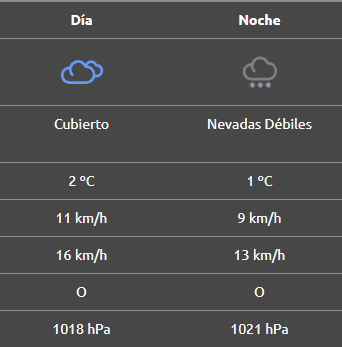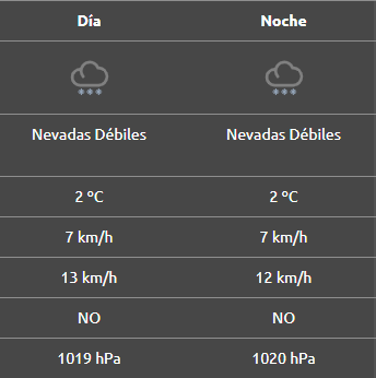 Durante el día el cielo estará cubierto. Sin embargo, en horas de la noche se esperan nevada débiles.