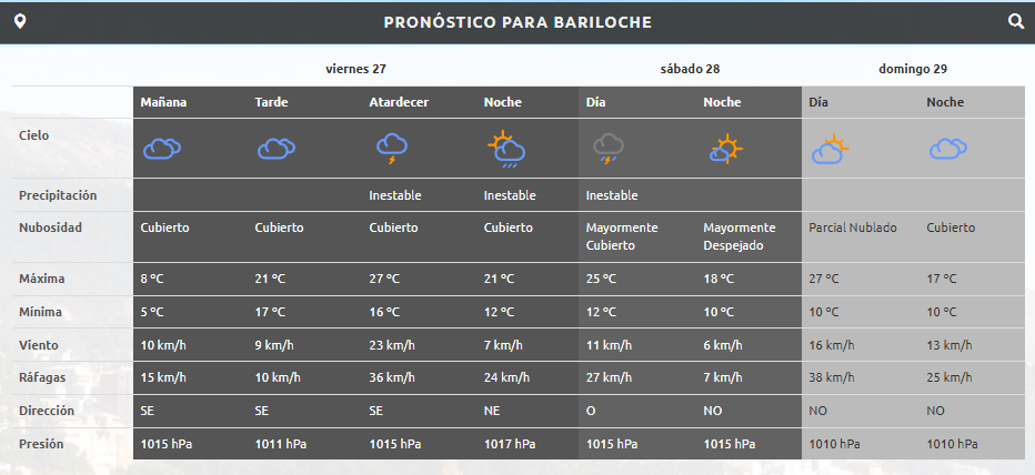 En la capital de Río Negro, Viedma, la máxima será de 30°C este viernes. Y según la AIC por la tarde noche se espera la llegada de lluvias a la región. Algo similar ocurrirá en Bariloche, que tendrá una máxima de 27°C pero con tormentas y lluvias por la tarde.
