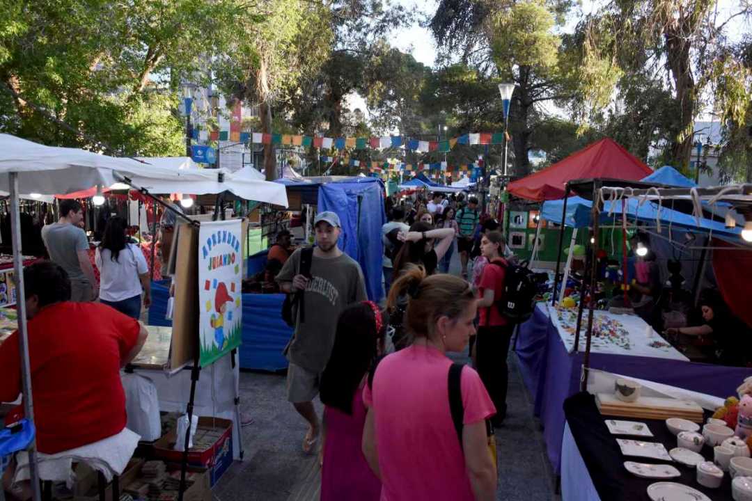 A partir de las 18 ,la avenida Argentina será peatonal hasta el lunes. Desde el mediodía o antes, los puestos ya están armados y la producción a la venta. Las niñeces de los artesanos juegan entre los puestos, ríen a carcajadas entre lonas y los pasillos (a esa hora con poca gente) o corren todo lo que se pueda a lo largo del bulevar.