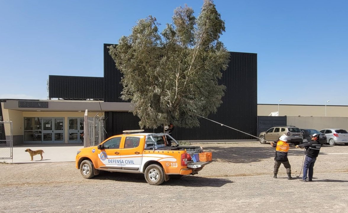 Giusti explicó que solo se presentaron daños materiales, sobre todo por la caída de árboles, postes y techos de chapa. «En la localidad de Centenario tenemos registrado que las ramas de un eucalipto cayeron sobre el alambrado de la EPET 22 y luego aplastaron a dos autos estacionados», detalló.
