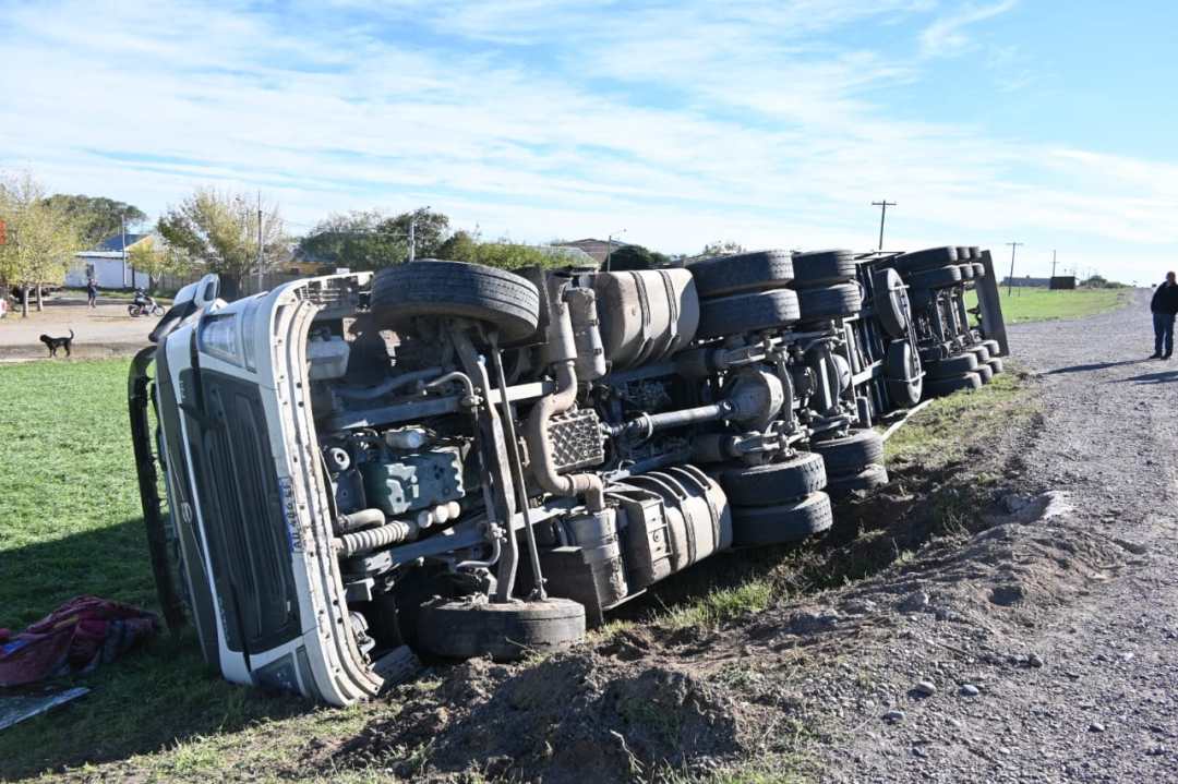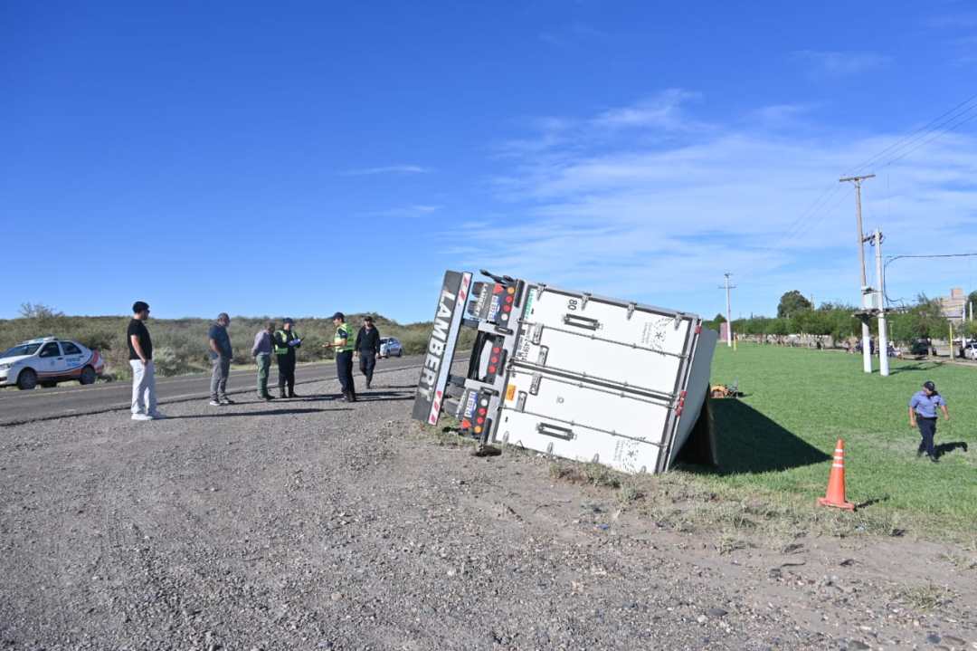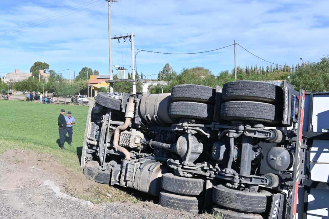 El hecho ocurrió cuando el vehículo —un camión Volvo que circulaba de oeste a este, desde Villa Regina camino al puerto de San Antonio Este— terminó incrustado en un desagüe lateral, lo que provocó el vuelco.