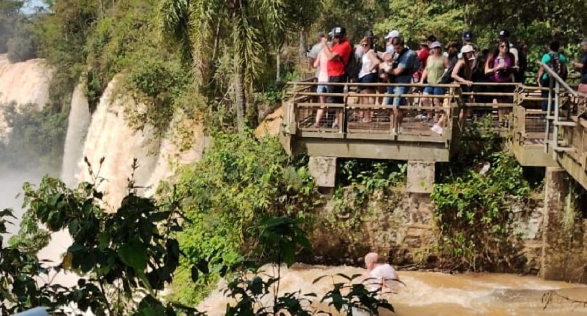 Ayer por la mañana, alrededor de las 11, un turista que visitaba el Parque Nacional Iguazú cayó desde la pasarela de las Cataratas del Iguazú en la zona del Salto Bossetti, que integra el circuito superior de los famosos saltos de agua en Misiones, por estas horas desbordados por la crecida del río. De acuerdo con las primeras informaciones, había trepado a una baranda, algo que no está permitido.