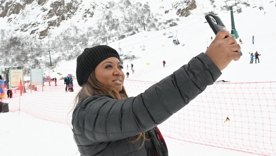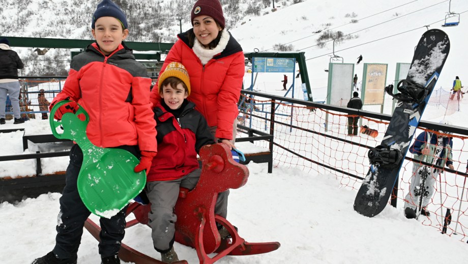 Liana Di Souza, de Aracajú, en Brasil, visitaba Bariloche por primera vez junto a sus pequeños hijos que se lanzaban una y otra vez en culipatín. «Habíamos tomado una clase de esquí así es que alguna idea tenemos. No sabíamos que hoy iniciaba la temporada. Fue una grata sorpresa«, admitió la brasileña, mientras se tomaba una selfie.