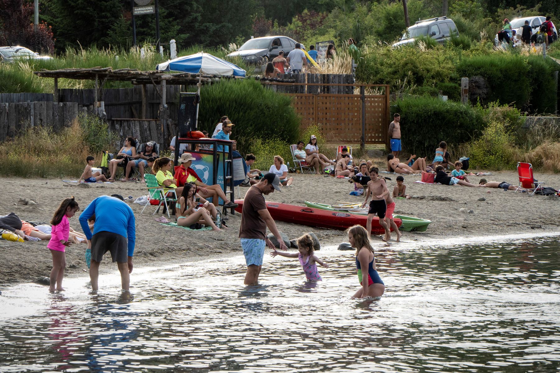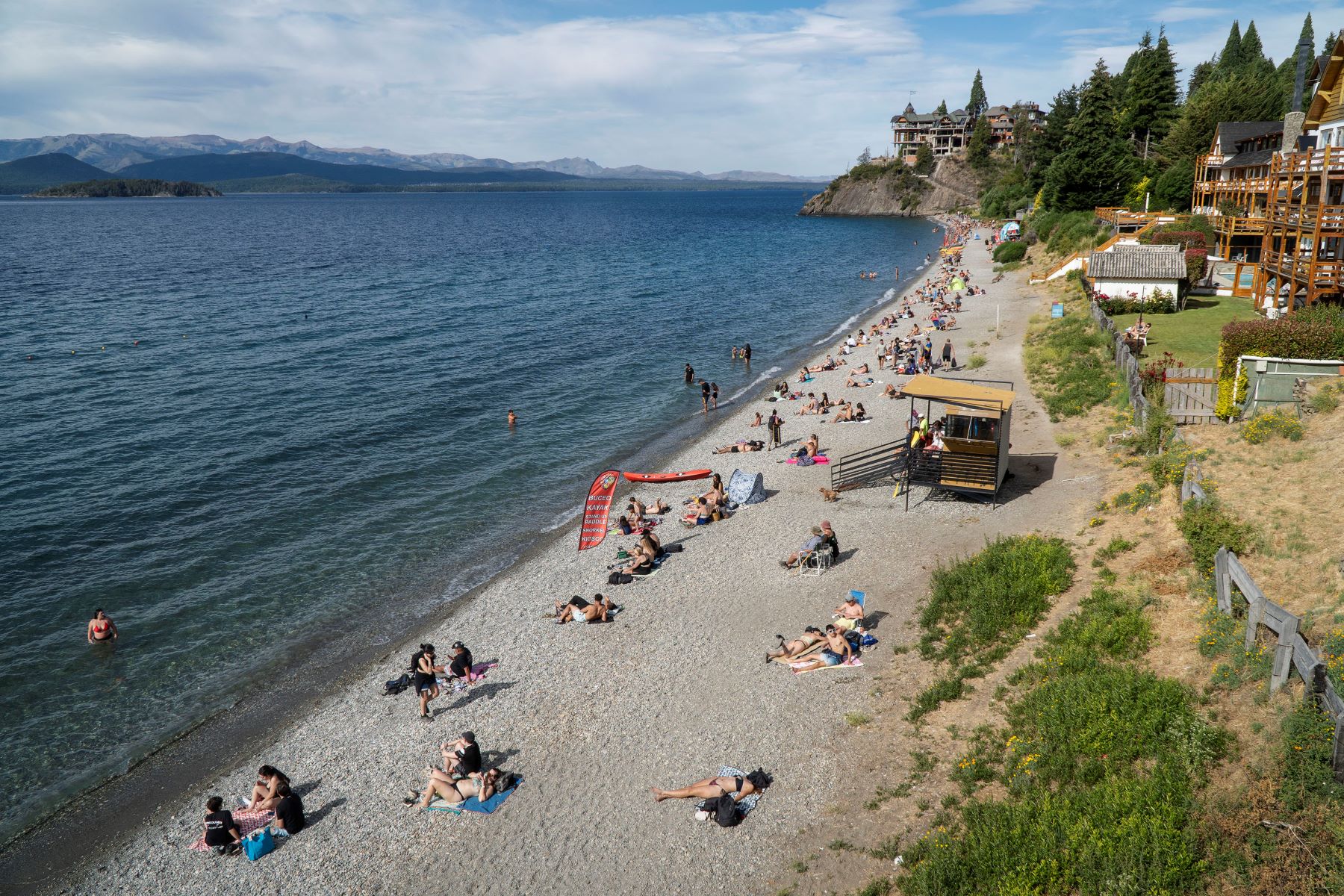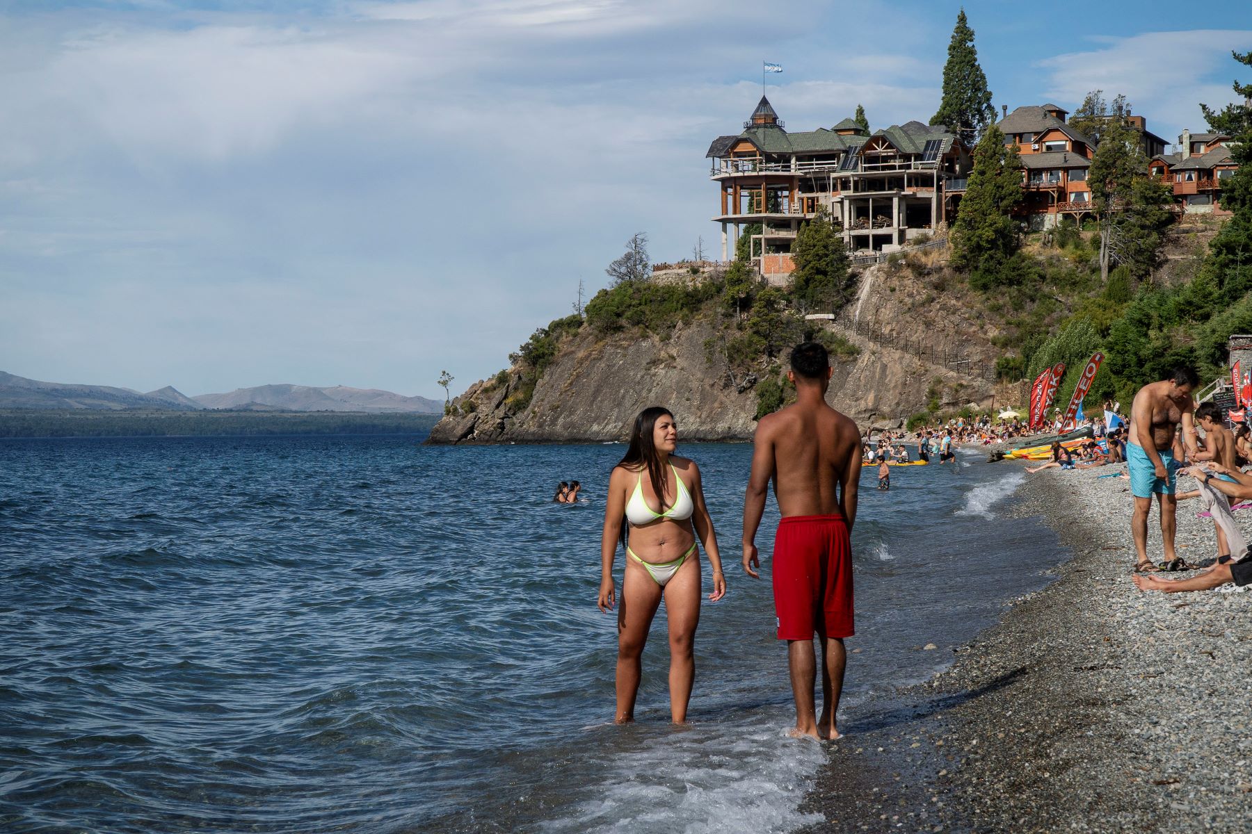 El movimiento se nota en el tránsito (las colas interminables por la avenida Bustillo que rodea la costa del lago Nahuel Huapi), el público en las playas y al atardecer en el centro de la ciudad.