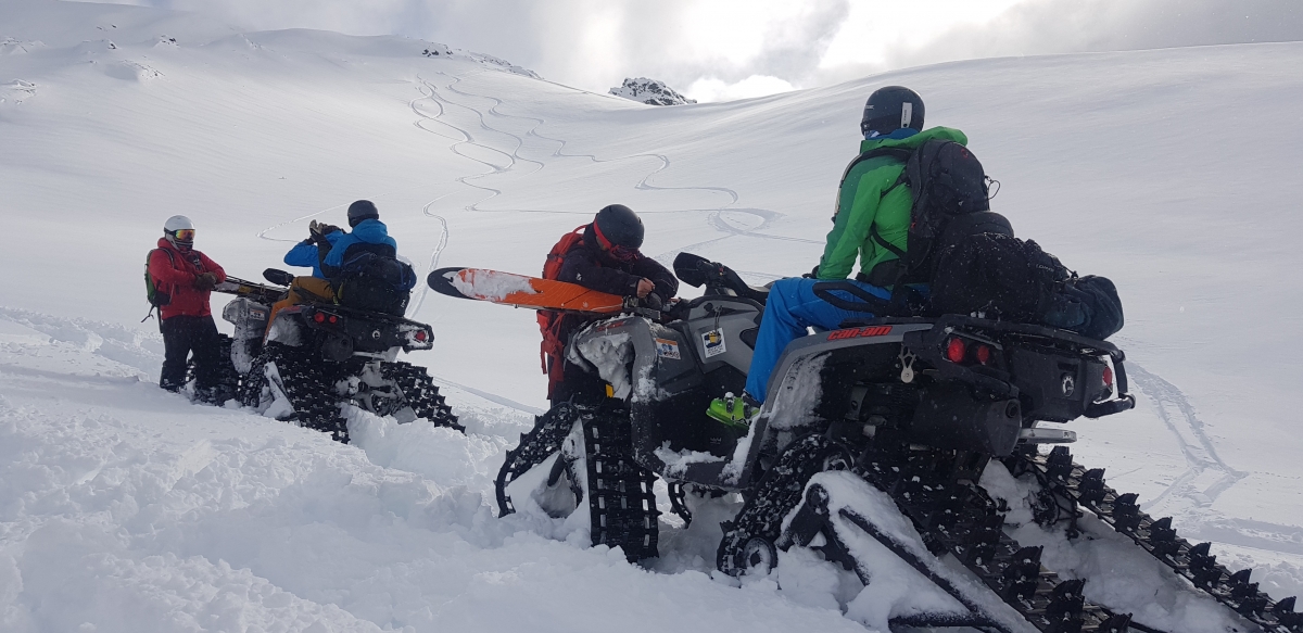 El traslado de los esquiadores para descender en laderas de nieve virgen es en vehículos con orugas y motos de nieve, y también cuenta con glampings donde ofrecen servicios gastronómicos y alojamiento.