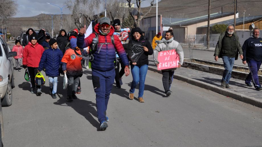 El deportista oriundo de Los Menucos fue recibido por un nutrido grupo de personas que lo acompañaron en su caminata durante los últimos kilómetros entre Clemente Onelli y Jacobacci.