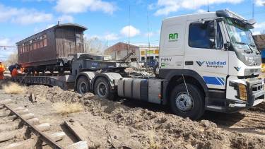 Hoy, dos camiones con la formación ferroviaria se trasladarán hasta Viedma para luego continuar su recorrido a lo largo de la provincia de Buenos Aires.