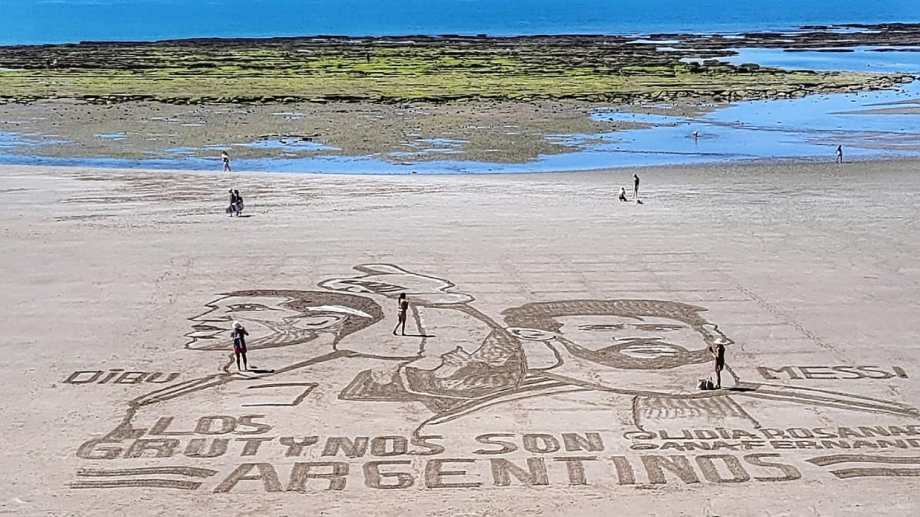Es que después de eso Argentina ganó, y tuvo que seguir la cábala. “Roberto Noy, que es comerciante de Las Grutas y el creador de unos personajes llamados Los Grutynos me propuso lo de intervenir la playa. Y arrancamos” recordó.