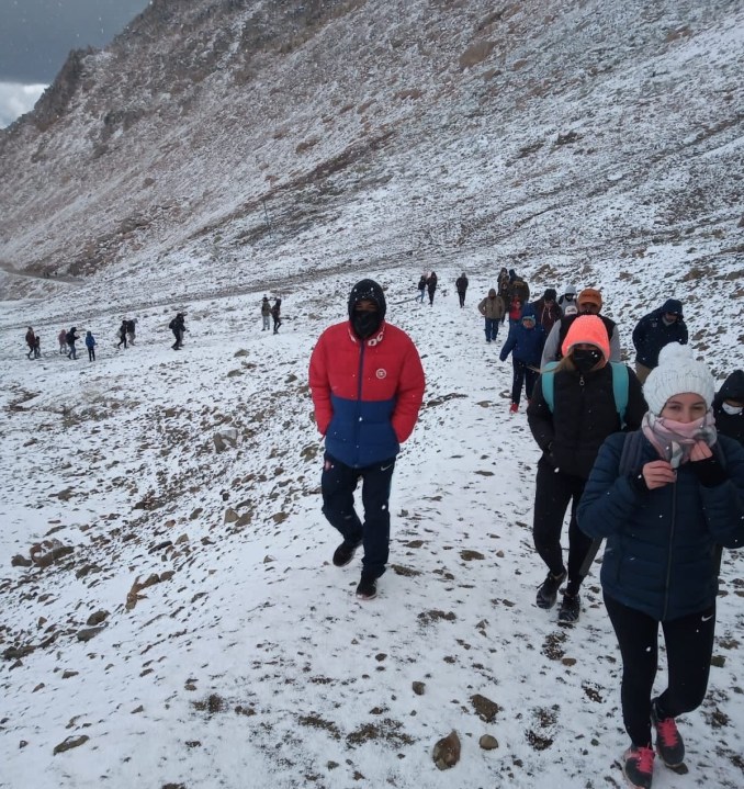 Los turistas pudieron llegar a la zona nevada por la telecabina Amancay, en la ladera sur de la montaña.