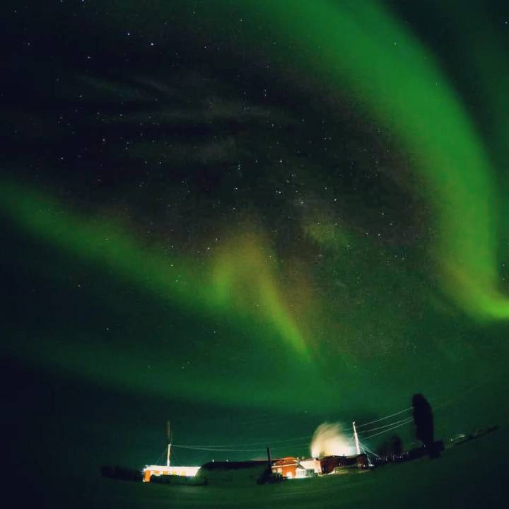 En la Base Antártica Conjunta Belgrano 2, el cielo se tiño de verde con las auroras, un fenómeno único que quedó registrado en estas increíbles imágenes.