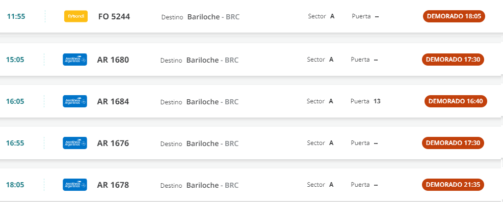 • De Aeroparque a Bariloche: se registran demoras en FO5244; AR1680; AR1684; AR1676; AR1678