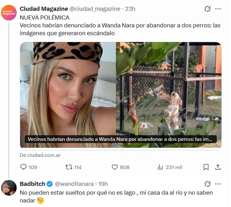 Wanda Nara se refirió a la polémica por sus perros “abandonados” en Nordelta