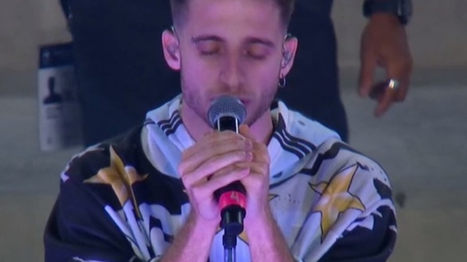 Wos cantó en el entretiempo de Argentina y usó el buzo de una emprendedora de Neuquén