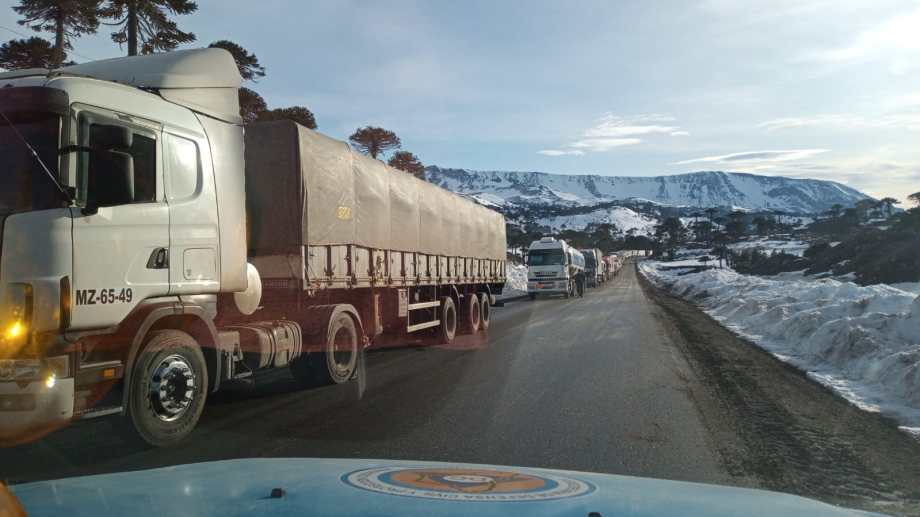 Tras nueve días de incertidumbre, aguardando que el clima de tregua y permita a los operadores viales trabajar sobre el camino, este martes un importante grupo de los 280 camiones varados en Las Lajas pudieron por fin viajar hacia el paso internacional Pino Hachado.